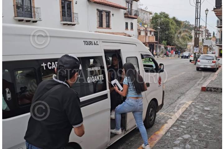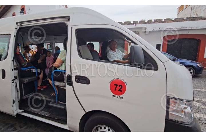 TAXCO, GUERRERO, 29ENERO2024.- Servicio de transporte público en la ciudad de Taxco, en la zona norte de Guerrero, el cual se suspendió durante casi una semana por amenazas del crimen organizado contra los transportistas. En las entradas y salidas de la ciudad colonial se puede observar la presencia de policía del estado que vigila el regreso parcial del transporte público, ha vuelto a circular cuatro de once derroteros. Imágenes tomadas el día de ayer. FOTO: ESPECIAL/CUARTOSCURO.COM