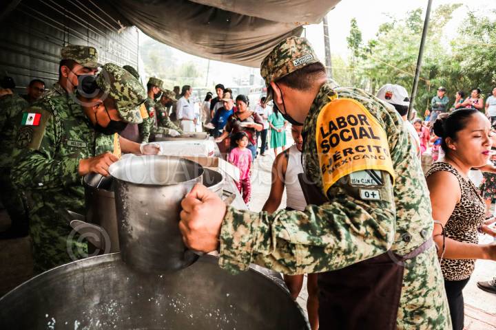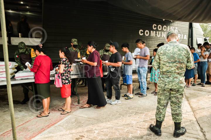 YAJALÓN, CHIAPAS. 10JUNIO2024.- El ejército Mexicano y Guardia Nacional instalan comedor comunitario en el Municipio de Yajalón, como parte del plan DN III, decenas de personas forman frente al comedor comunitario para recoger sus alimentos. Militares dan alrededor de 200 raciones de comida por día. FOTO: DAMIÁN SÁNCHEZ/CUARTOSCURO.COM
