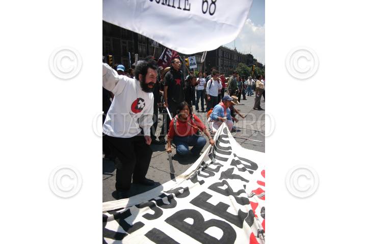 MÉXICO D.F. 10JUNIO2007.-Integrantes del Comite 68 y simpatizantes de San Salvador Atenco, realizaron una marcha por la comemoración del 36 aniversario del Halconazo. FOTO: GUILLERMO PEREA/CUARTOSCURO.COM