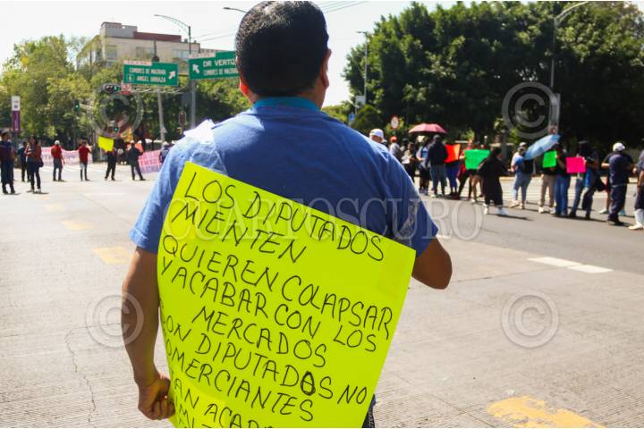 CIUDAD DE MÉXICO. 30JULIO2025.- Durante dos horas comerciantes de mercados públicos de la alcaldía Benito Juárez, bloquearon Xola y Cuauhtémoc. En la imagen algunas de las pancartas mostradas por los manifestantes. FOTO: VICTORIA VALTIERRA/CUARTOSCURO.COM