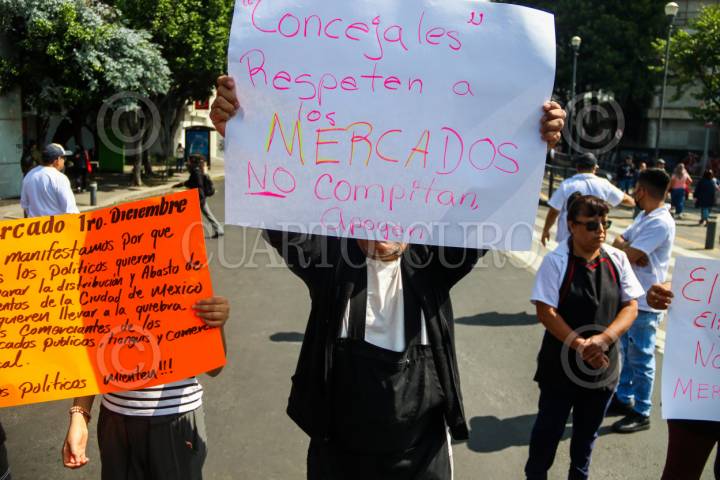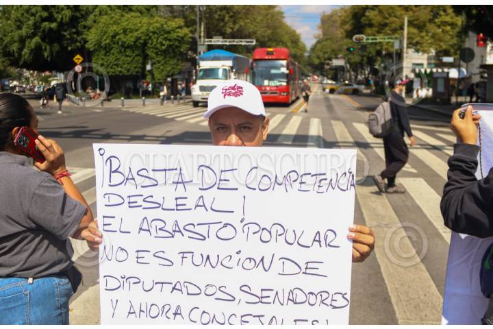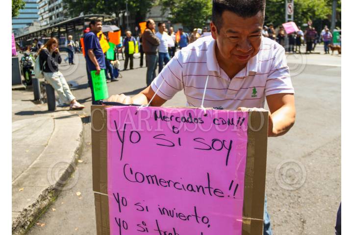 CIUDAD DE MÉXICO. 30JULIO2025.- Durante dos horas comerciantes de mercados públicos de la alcaldía Benito Juárez, bloquearon Xola y Cuauhtémoc. En la imagen una de las pancartas que mostraban los manifestantes. FOTO: VICTORIA VALTIERRA/CUARTOSCURO.COM