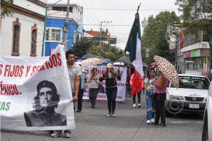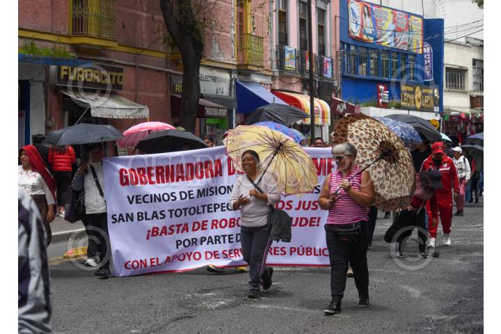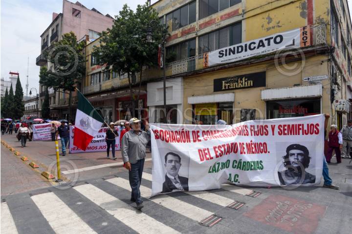 TOLUCA, ESTADO DE MÉXICO, 08SEPTIEMBRE2025.- Comerciantes fijos y semifijos integrantes de la asociación “Lázaro Cárdenas” marcharon por las calles de la ciudad de Toluca hasta llegar a Palacio de Gobierno para exigir seguridad ya que han sido víctimas de extorsión, fraudes e intimidación por parte de integrantes de grupos criminales. A pesar de realizar denuncias ante la FGJEM, no ha pasado nada. Temen por su seguridad en los lugares en que trabajan, como es el Mercado de Palmillas, San Andrés Cuexcontitlán y San Blas Totoltepec. FOTO: CRISANTA ESPINOSA AGUILAR/CUARTOSCURO.COM