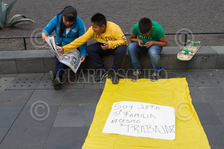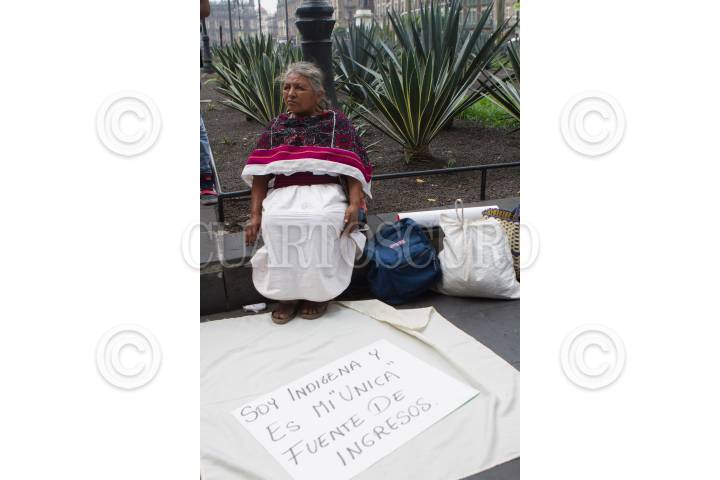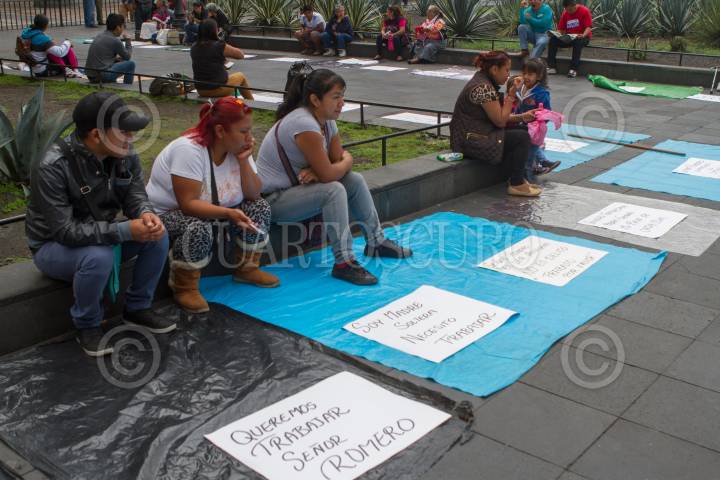 MÉXICO, D.F., 29MAYO2015.- Comerciantes agrupados a la organización "Artesanos y Vendedores del Centro Histórico" se manifestaron en las jardineras que quedan a un costado de la Catedral Metropolitana en donde regularmente ofrecen artesanías de todo tipo, los inconformes colocaron sus tendidos sin mercancías y en su lugar pancartas con la leyenda de querer trabajar culpando a un "Señor Romero", autoridad del Gobierno Capitalino, de no dejarlos ejercer su actividad comercial. FOTO: MOISÉS PABLO /CUARTOSCURO.COM