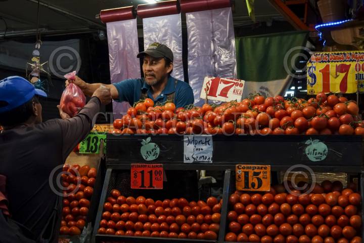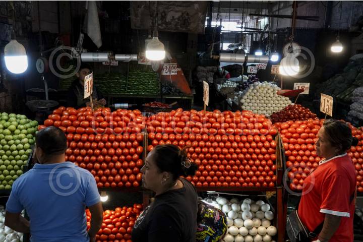 CIUDAD DE MÉXICO, 16ABRIL2025.- Recientemente el gobierno estadounidense anunció la imposición de aranceles del 20.91% al jitomate mexicano, lo que preocupado a los productores y comerciantes de esta hortaliza que representa el 55?l consumo en el país vecino. La medida podría entrar el vigor el próximo 14 de junio de 2025 lo que podría desencadenar un aumento de hasta el 50% en el precio del producto en los mercados americanos. En la imagen, venta del jitomate al interior de la Central de Abastos en la alcaldía Iztapalapa, el mayor centro de comercio de frutas y verduras de la ciudad. FOTO: GALO CAÑAS/CUARTOSCURO.COM