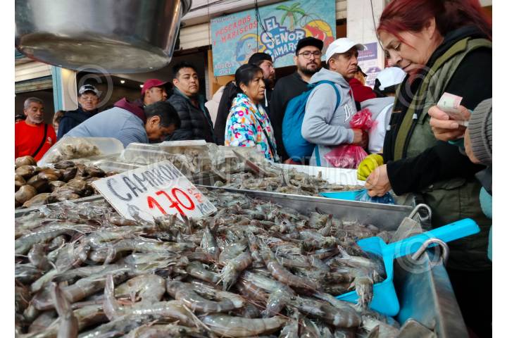 CIUDAD DE MÉXICO, 17ABRILO2025.- Cientos de capitalinos abarrotaron los pasillo de la Nueva Viga en la alcaldía Iztapalapa para adquirir pescados y mariscos en este Jueves Santo.  FOTO: GALO CAÑAS/CUARTOSCURO.COM