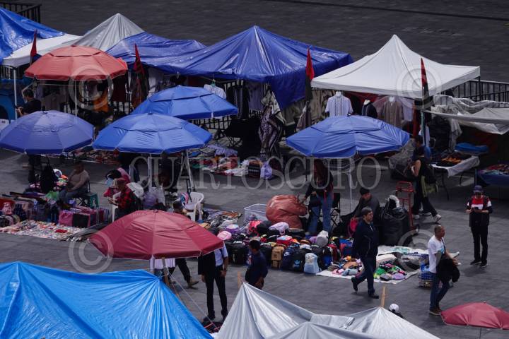 CIUDAD DE MÉXICO, 28MAYO2025.- Comerciantes de de artesanías , ropa y comida se instalaron frente a Palacio Nacional para vender sus productos en el paso peatonal que esta a lado del plantón de maestros de la Coordinadora Nacional de Trabajadorres de la Educación (CNTE) en el Zócalo capitalino. FOTO: GRACIELA LÓPEZ/CUARTOSCURO.COM