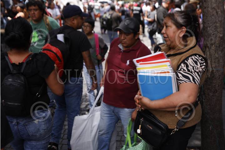 CIUDAD DE MÉXICO, 31AGOSTO2025.- Padres de familia acudieron a comprar la lista de útiles escolares en el Centro Histórico en el último día de vacaciones de verano. FOTO: GRACIELA LÓPEZ/CUARTOSCURO.COM
