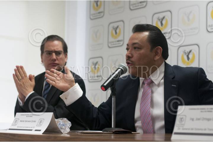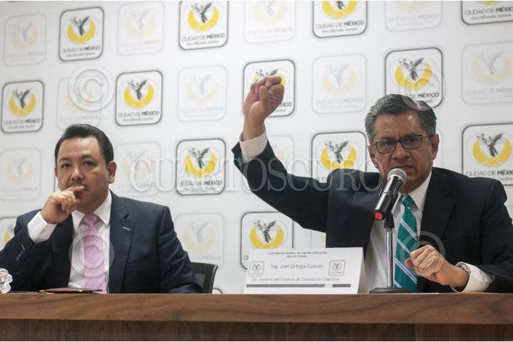 MÉXICO, D.F., 07FEBRERO2014.- Héctor Serrano, secretario de Gobierno, y Joel Ortega, director general del Sistema de Transporte Colectivo (STC), durante la conferencia para anunciar el programa para la integración a la Economía Formal de los Comerciantes al Interior del Sistema Colectivo Metro. FOTO: DIEGO SIMÓN SÁNCHEZ /CUARTOSCURO.COM