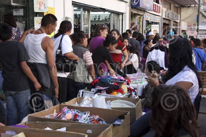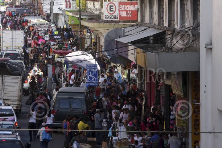 GUADALAJARA, JALISCO, 19DICIEMBRE2011.- Conforme pasan los días y se acerca la navidad, las personas incrementan notablemente sus actividades para hacer sus compras de temporada navideña y esto causa gran caos en tiendas, plazas u otros establecimientos, en este caso se observa la calle de obregon ubicada en el primer cuadro de esta ciudad. FOTO: FERNANDO CARRANZA GARCIA/CUARTOSCURO.COM
