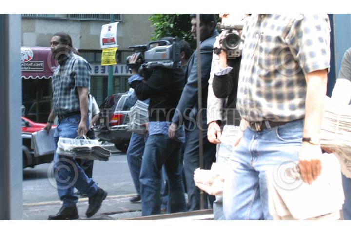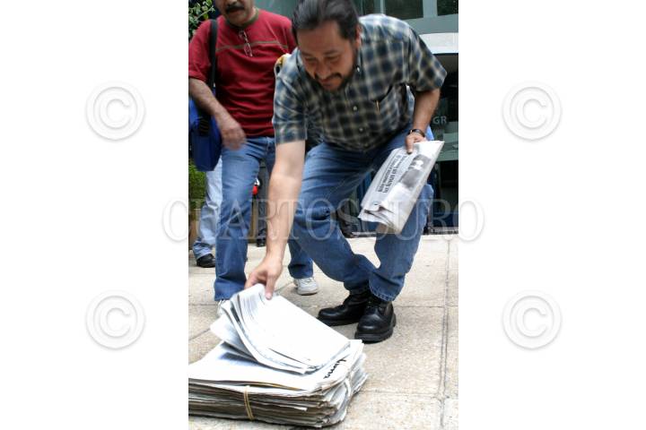 México, D.F. 08 JUNIO 2004.- Gerardo Fernández Noroña presentó periódicos de circulación nacional como pruebas de las acusaciones contra Arturo Montiel ante la PGR. FOTO: Sandra Perdomo/CUARTOSCURO.COM