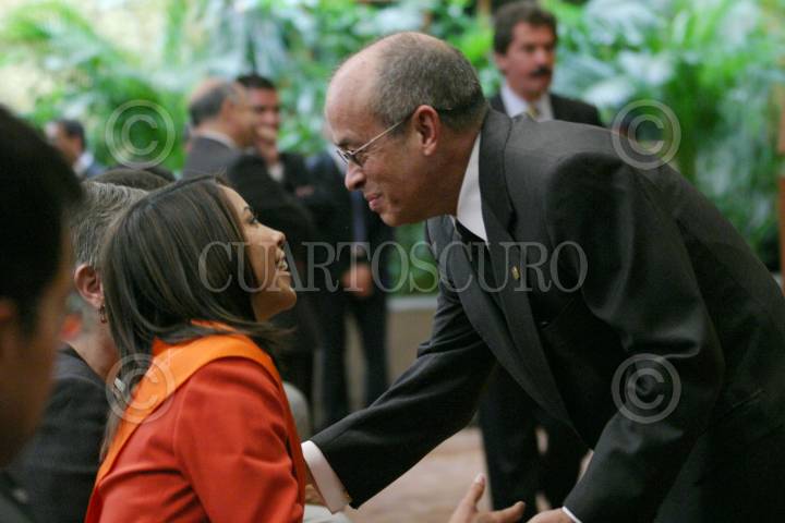 MEXICO, D.F. 22FEBRERO2006.- María de los Angeles Fromow, fiscal especial paradelitos electorales saluda a Ignacio Carrillo Prieto, fiscal especial para delitos del pasado previo a la presentación del fiscal para la atención de delitos cometidos contra periodistas. FOTO: Nelly Salas/CUARTOSCURO.COM