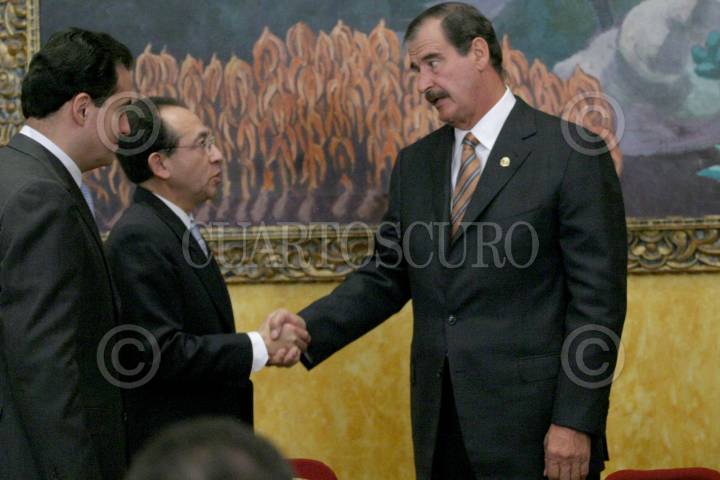 MEXICO, D.F. 22FEBRERO2006.- David Vega Vera, fiscal para la atención de delitos cometidos contra periodistas saluda al presidente Vicente Fox durante su presentación como fiscal. FOTO: Nelly Salas/CUARTOSCURO.COM