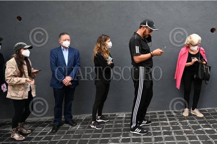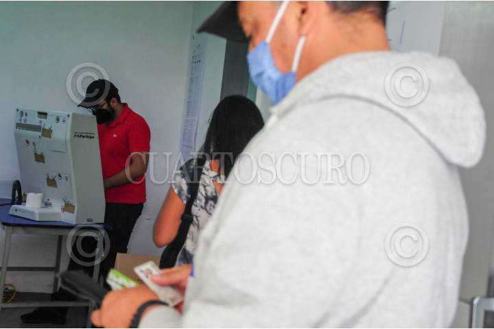 Fila de personas para realizar su voto electrónico.