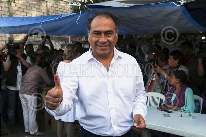 CHILPANCINGO, GUERRERO, 07JUNIO2015.- Héctor Astudillo, candidato a gobernador por el PRI, acudió a la casilla correspondiente en donde emitió su voto. En la imagen, muestra la boleta electoral. FOTOS: JOSÉ I. HERNÁNDEZ /CUARTOSCURO.COM