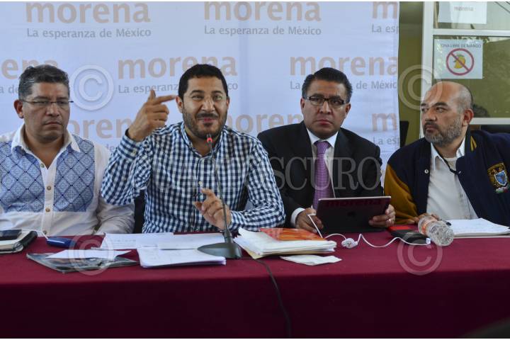 MÉXICO, D.F., 08JUNIO2015.- En la imagen, Froylan Yescas, representante de Morena en el D.F., Marti Batres, presidente nacional del partido, Horacio Duarte, dirigente a nivel nacional y Marcos Gil González, abogado integrante del Movimiento, durante la conferencia que ofrecieron para informar que impugnarán las elecciones en las delegaciones Coyoacán, Iztapalapa, Iztacalco, Gustavo A. Madero y Magdalena Conreras. FOTO: MARÍA JOSÉ MARTÍNEZ /CUARTOSCURO.COM