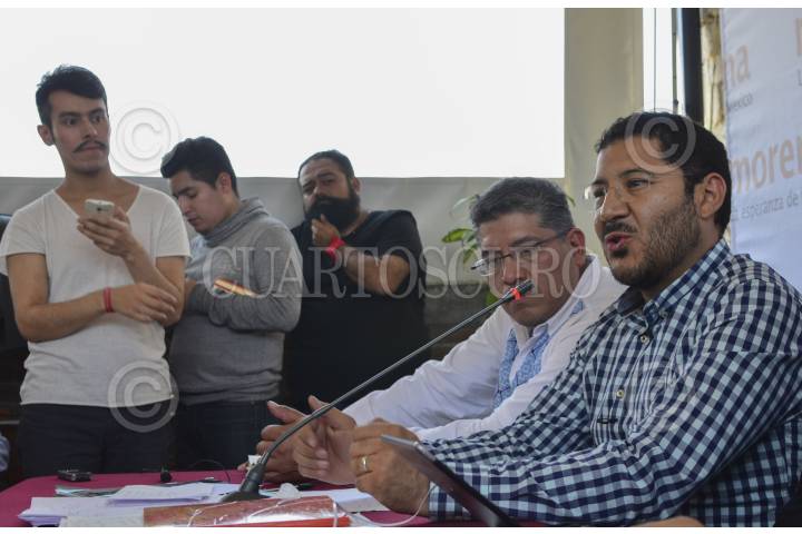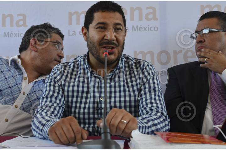 MÉXICO, D.F., 08JUNIO2015.- En la imagen, Froylan Yescas, representante de Morena en el D.F., Marti Batres, presidente nacional del partido, Horacio Duarte, dirigente a nivel nacional, durante la conferencia en donde Martí Batres mencionó que Morena es la fuerza política más importante de la capital. FOTO: MARÍA JOSÉ MARTÍNEZ /CUARTOSCURO.COM