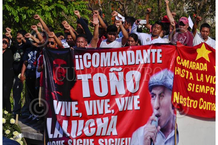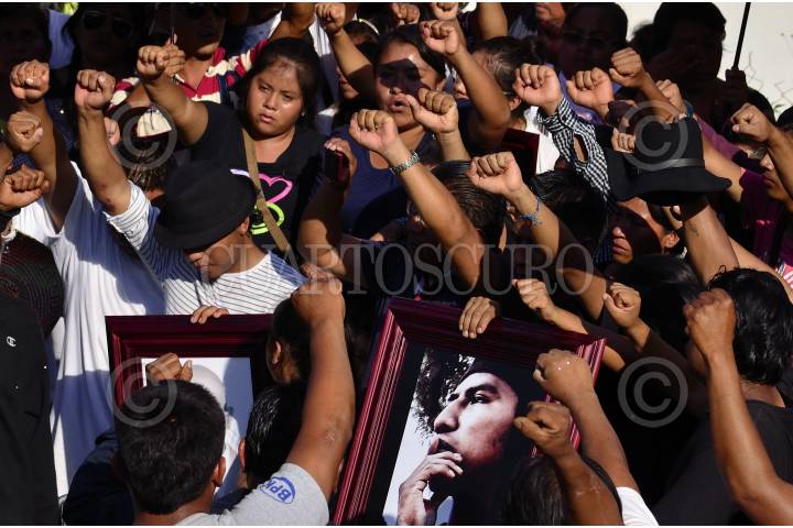 TLAPA, GUERRERO, 09JUNIO2015.- Miles de personas acompañaron a la familia de Antonio Vivar, joven asesinado el pasado domingo por policías federales, en una marcha fúnebre para exigir la resolución del caso. Compañeros de Vivar aseguraron que “El Comandante Toño”, como se le conocía, se esforzó por unir a colonias que por muchos años estuvieron en conflicto y que su principal lucha era motivada por conseguir justicia social para los indígenas y la erradicación de la pobreza. FOTO: SALVADOR CISNEROS /CUARTOSCURO.COM