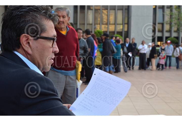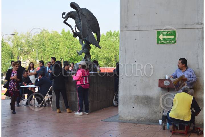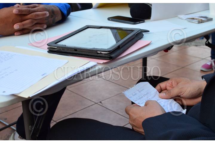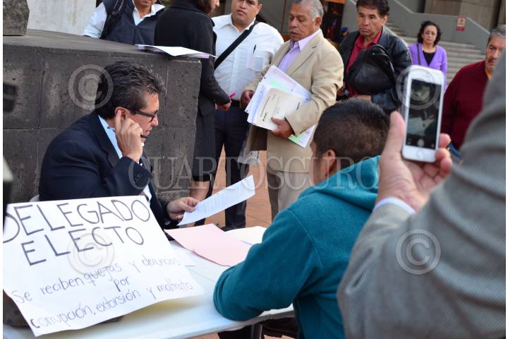 MÉXICO, D.F., 11JUNIO2015.- En su cuarto día en asamblea pública, Ricardo Monreal, quien recibirá esta tarde la constancia que lo certificará como delegado electo de la delegación Cuauhtémoc, atiende denuncias sentado en un pequeña mesa en la explanada delegacional. En promedio ha atendido a 40 personas por hora, y menciona que las quejas que más ha recibido por parte de los vecinos de la delegación tienen que ver con inseguridad, falta de pavimentación, y escasez de fuentes de empleo. "No me iré de aquí hasta que todos los que están formados sean atendidos", dijo ante medios de comunicación. FOTO: MARÍA JOSÉ MARTÍNEZ /CUARTOSCURO.COM
