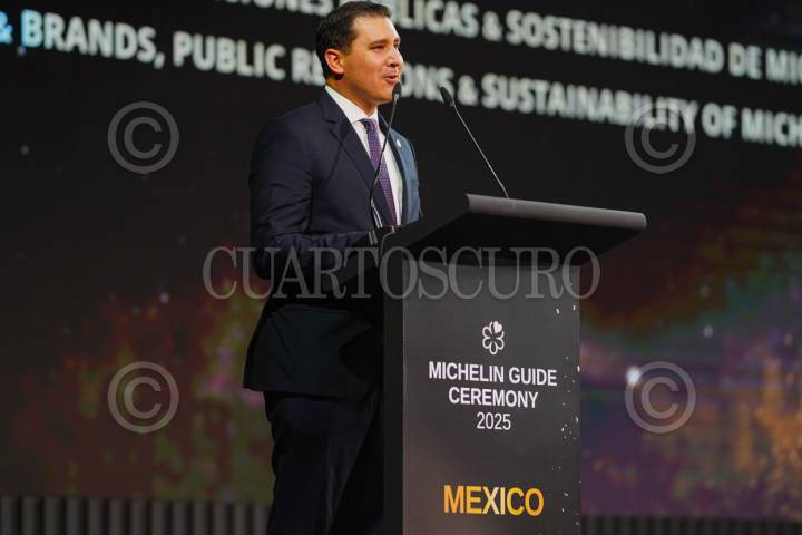 CIUDAD DE MÉXICO, 03JUNIO2025.- Juan Pablo Ríos y Valles, representante de la Guía Michelin, durante la ceremonia de premiación y anuncio de la de la Guía Michelin 2025 México. FOTO: GALO CAÑAS/CUARTOSCURO.COM