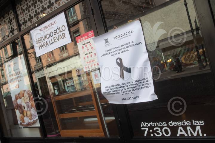 Diversos restaurantes del Centro Histórico mantienen sus servicio sólo para llevar debido a que se encuentra en Semáforo Rojo la capital deido al alto número de contagios por Covid-19