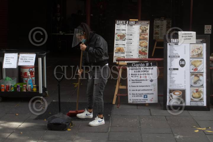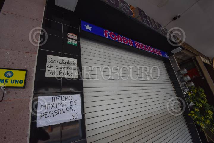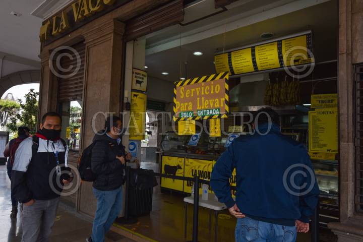 Diversos restaurantes del Centro Histórico mantienen sus servicio sólo para llevar debido a que se encuentra en Semáforo Rojo la capital debido al alto número de contagios por Covid-19