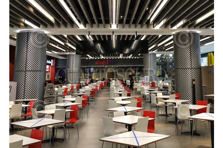 Áreas de comida de centros comerciales preparan reapertura al 30% de su capacidad.