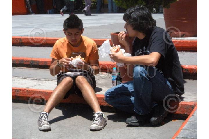 MÉXICO, D.F., 30JULIO2010.- Dos jóvenes comen torta, en el marco de la inauguración de la Séptima Feria de la Torta en la explanada de la Delegación Venustiano Carranza, en donde se logro romper el récord del año pasado en la misma feria, de la torta mas grande del mundo. La feria cuenta con mas de 45 stands en donde se instalaron torteros de distintas partes del pais. FOTO: DIEGO SIMÓN SÁNCHEZ/CUARTOSCURO.COM