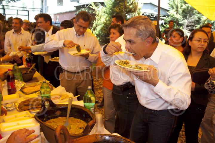 MÉXICO, D.F., 13MARZO2012.- Miguel Ángel Mancera, precandidato a la Jefatura de Gobierno por los partidos PRD, PT y Movimiento Ciudadano, se reunió con agricultores de Tláhuac, quienes le expresaron su problemática para producir sus verduras y legumbre, siendo el agua la más apremiante. El ex-procurador recorrió los terrenos ejidales en donde los campesinos le mostraron los campos de romeritos y lechugas, al finalizar el recorrido lo invitaron a comer alimentos preparados en sus huertas. FOTO: MOISÉS PABLO /CUARTOSCURO.COM