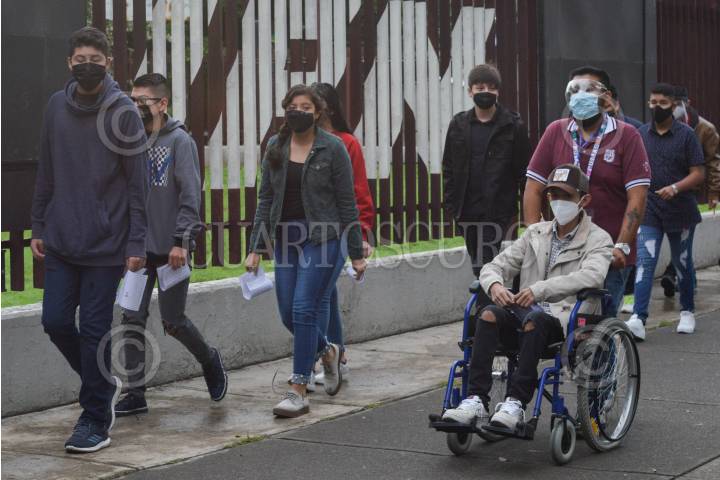 Alumnos ingresan al plantel para realizar el examen comipems.