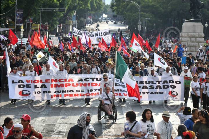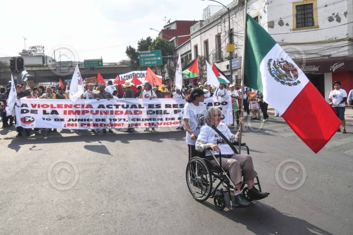CIUDAD DE MÉXICO, 10JUNIO2025.- Integrantes del Comité 68 participaron en la marcha por el 54 aniversario de la "Matanza de Corpus Christi" conocida como "El Halconazo". La movilización partió de la Benemérita Escuela Nacional de Maestros (BENM) rumbo al zócalo capitalino. FOTO: MARIO JASSO/CUARTOSCURO.COM