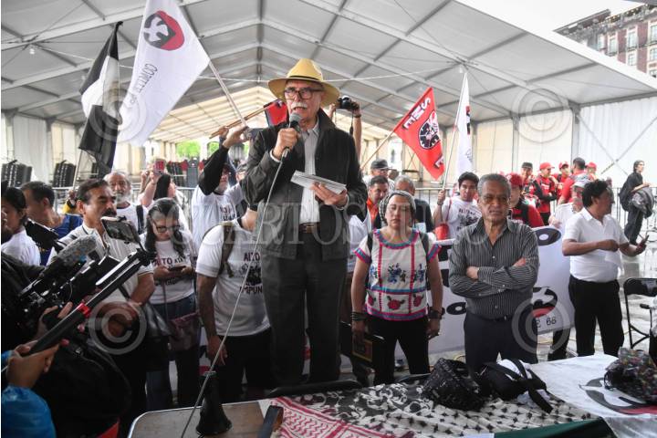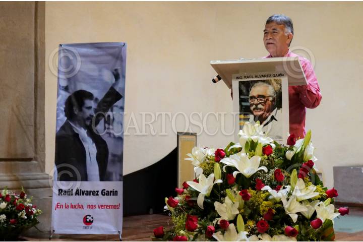 CIUDAD DE MÉXICO, 09AGOSTO2024.- Félix Hernández Gamundi, miembro del Comité 68, pronunció un discurso en homenaje a Raúl Álvarez Garín, activista y político mexicano, durante la ceremonia póstuma organizada para conmemorar el 10º aniversario de su fallecimiento. El evento tuvo lugar en el Ex Templo de Corpus Christi. FOTO: ALICE MORITZ /CUARTOSCURO.COM