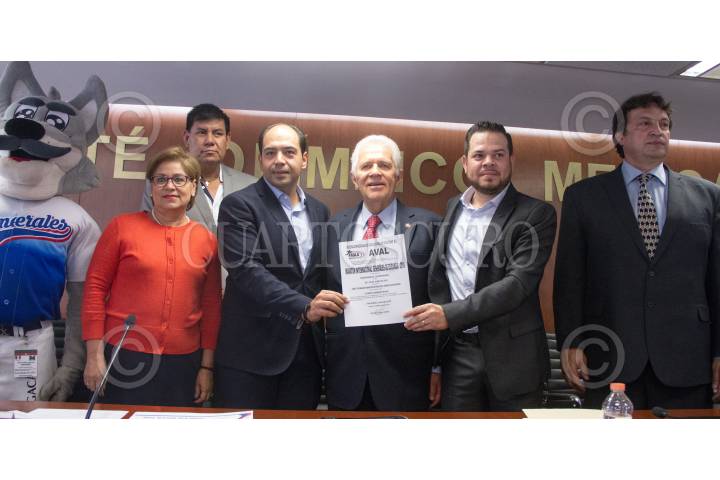 CIUDAD DE MÉXICO, 11JUNIO2019.- Anuncio del Maratón Internacional Generales de Durango 2019, la presentación se realizó en el Comité Olímpico Mexicano, esta mañana. Susana Triana, Eleazar Gamboa, Carlos Padilla Becerra Alfredo Aramburu y Antonio Lozano. FOTO: VICTORIA VALTIERRA /CUARTOSCURO.COM
