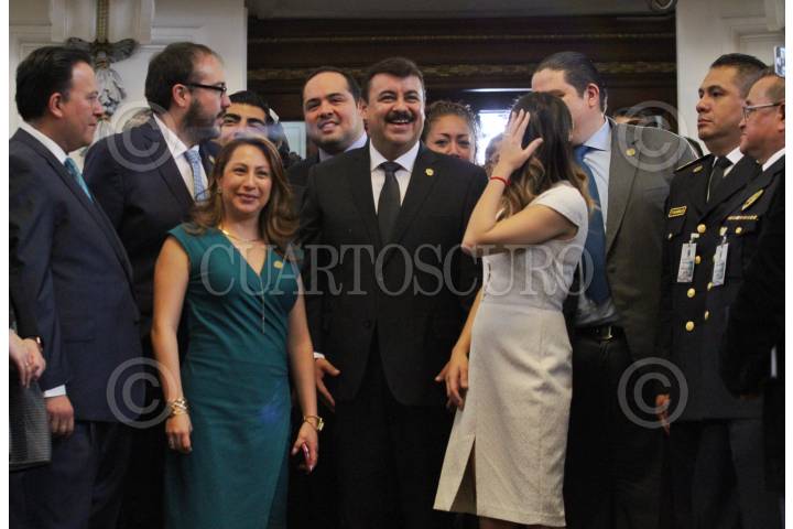 MÉXICO, D.F., 08OCTUBRE2015.- Hiram Almeida, secretario de Seguridad Pública, rindió su comparecencia ante el pleno de la Asamblea Legislativa. Durante la comparecencia ahondó en el tema del presupuesto que la secretaria ha destinado para reducir el alza de asaltos en vía pública. Índices de homicidio, secuestro, violación y robo, fueron otros temas que el secretario incluyó en su comparecencia. En la imagen, la diputada del Partido Verde Ecologista de México, escolta al secretario de Seguridad Pública, Hiram Almeida, previo a su comparecencia. FOTO: MARÍA JOSÉ MARTÍNEZ /CUARTOSCURO.COM