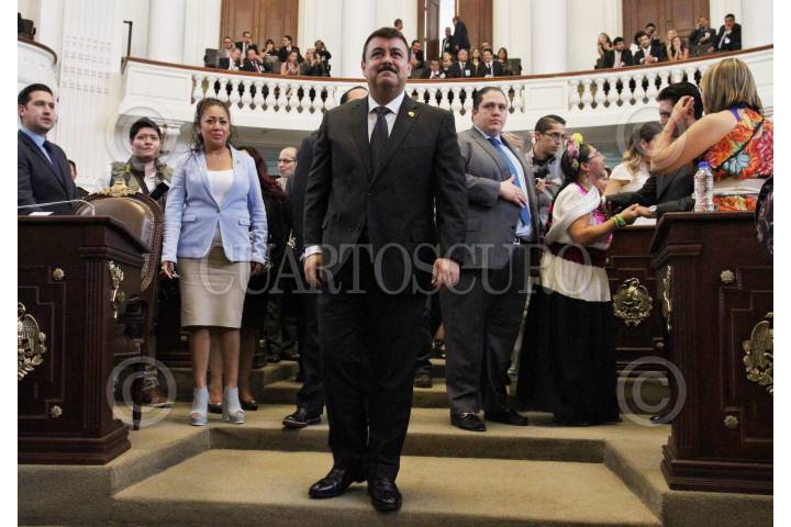 MÉXICO, D.F., 08OCTUBRE2015.- Hiram Almeida, secretario de Seguridad Pública, rindió su comparecencia ante el pleno de la Asamblea Legislativa. Durante la comparecencia ahondó en el tema del presupuesto que la secretaria ha destinado para reducir el alza de asaltos en vía pública. Índices de homicidio, secuestro, violación y robo, fueron otros temas que el secretario incluyó en su comparecencia. En la imagen, diputados de Morena salieron de la sesión en la que el secretario de Seguridad Pública Hiram Almeida presentaba su comparecencia. FOTO: MARÍA JOSÉ MARTÍNEZ /CUARTOSCURO.COM