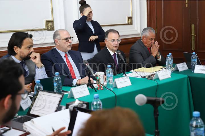 CIUDAD DE MÉXICO, 20AGOSTO2025.- Francisco de la Torre, compareció ante la Primera Comisión de Asuntos Políticos e Internacionales de la Comisión Permanente del Congreso de la Unión en la que se sometió a discusión la aprobación del dictamen que lo avala como embajador de México ante Indonesia. Lo acompañan los integrantes de dicha comisión: Enrique Inzunza y Mónica Angélica Álvarez, La reunión fue realizada en el Salón Belisario Domínguez de la antigua sede Xicoténcatl. FOTO: MARIO JASSO/CUARTOSCURO.COM