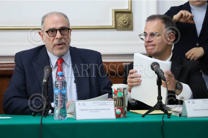 CIUDAD DE MÉXICO, 21NOVIEMBRE2024.- El presidente del Consejo Judicial Ciudadano, Jorge Nader Kuri, presenta a Ulrich Richter Morales, candidato a ocupar el cargo de Fiscal General de la capital. FOTO: DANIEL AUGUSTO/ CUARTOSCURO.COM