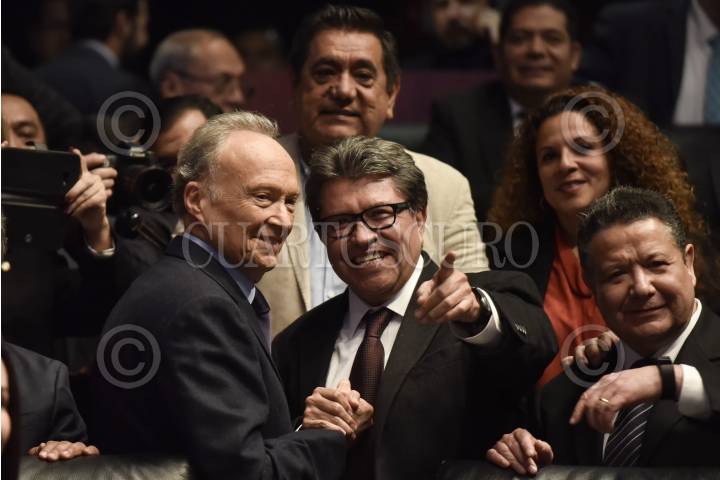 CIUDAD DE MÉXICO, 18ENERO2019.- Alejandro Gertz, fue elegido como Fiscal General de la República durante la realización de s lleva a cabo la Sesión Extraordinaria en la Cámara de Senadores. En la imagen, Ricardo Monreal, coordinador de Morena en el senado, felicita a Alejandro Gertz. FOTO: MARIO JASSO /CUARTOSCURO.COM