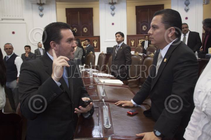 MÉXICO, D.F., 04OCTUBRE2012.- Los coordinadores Federico Döring, PAN, conversa con Manuel Granados, PRD, en la sesión de la Asamblea Legislativa del DF. FOTO: MOISÉS PABLO /CUARTOSCURO.COM