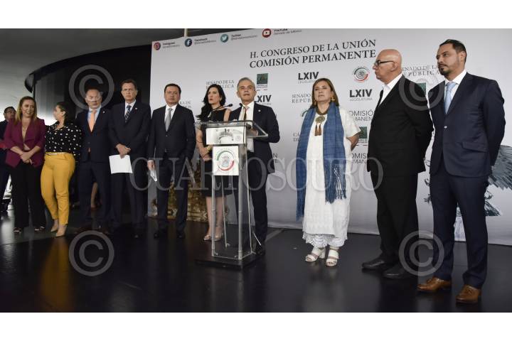 CIUDAD DE MÉXICO, 21MAYO2019.- Senadores de las bancadas del PRI, PAN, Movimiento Ciudadano y PRD, ofrecieron conferencia de prensa para fijar su postura en solicitar la comparecencia de Carlos Urzúa, secretario de Hacienda y Crédito Público, ante la reciente renuncia de Germán Martínez, director general del Instituto Mexicano del Seguro Social (IMSS). FOTO: MARIO JASSO /CUARTOSCURO.COM