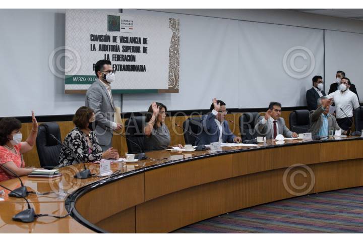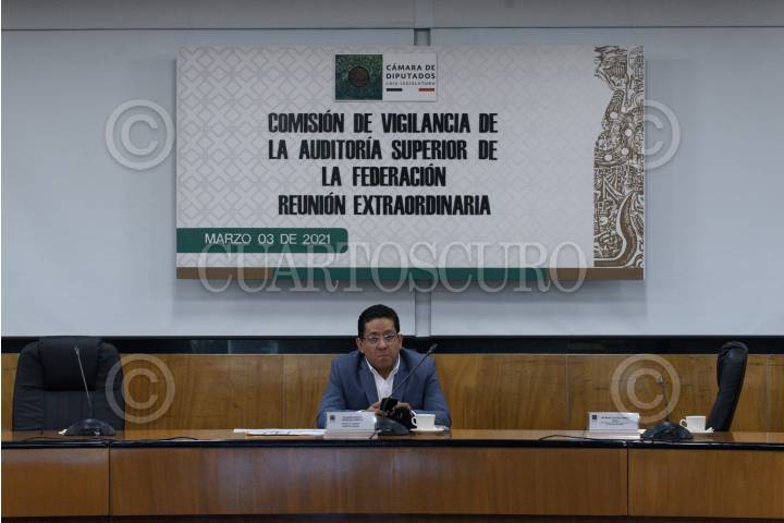 Los legisladores: Josefina Salazar Báez; Mario Alberto Rodríguez y Marco Antonio Andrade, durante la reunión extraordinaria de la Comisión de Vigilancia de la Auditoría Superior de la Federación, en la que se aprobó la fecha de la comparecencia de Agustín Caso, auditor especial de Desempeño de la ASF.