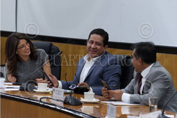 MÉXICO, D.F., 22FEBRERO2012.- El diputado Angel Patricio Chirinos, Mony Sacha de Swaan Addati, comisionado presidente de la Comisión Federal de Telecomunicaciones (COFETEL), el diputado Pablo Escudero, Agustín Guerrero durante la comparecencia del comisionado la cual fue cancelada por la ausencia de los otros 4 comisionados, que se realizó en la Cámara de Diputados. FOTO: RODOLFO ANGULO / CUARTOSCURO.COM