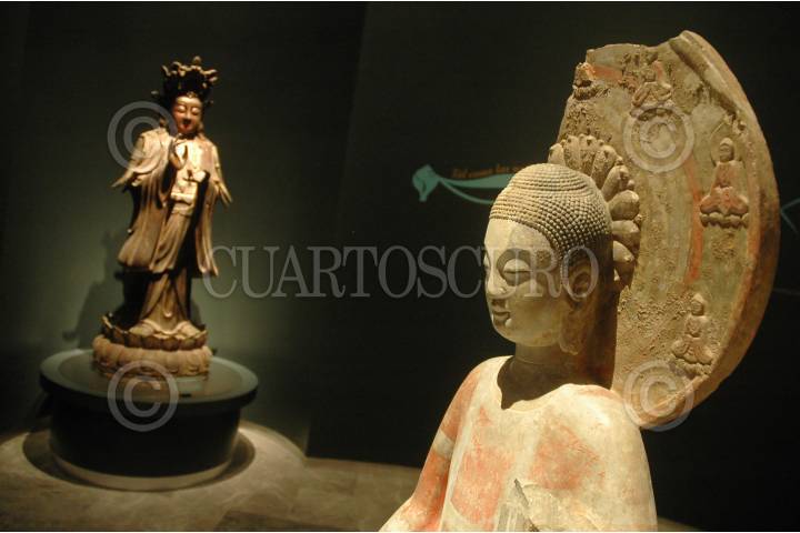 MEXICO, D.F., 05MARZO2008.- La exposición Buda Guanyn Tesoros de la Compasión que se inauguro hoy en el Museo de Historia del Castillo de Chapultepec; a través de esculturas, pinturas, otros objetos rituales y textos sagrados, esta exposición desarrolla diversos temas bajo el eje de la compasión, valor fundamental de la tradición budista. Esta exposición se podrá visitar durante Marzo - Mayo del presente año. FOTO: RODOLFO ANGULO/CUARTOSCURO.COM