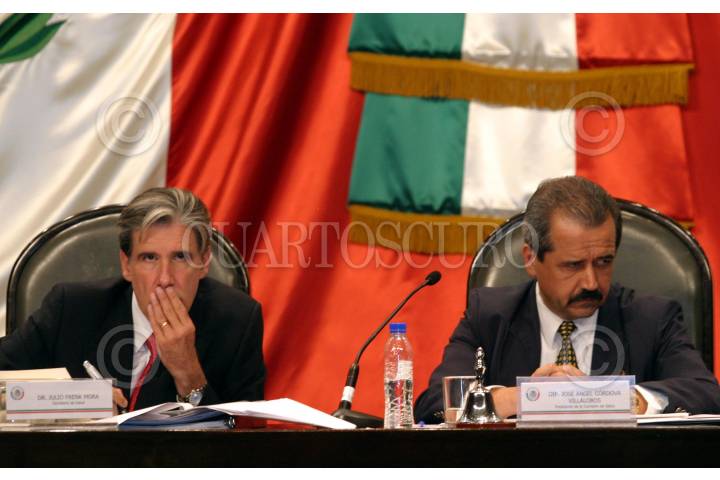 MEXICO D.F. 23SEPTIEMBRE2004.- Julio Frenk Mora, secretario de Salud, compareció ante la cámara de diputados, junto a él, el presidente de la comisión de salud, José Ángel Cordova Villalobos. FOTO: Sandra Perdomo/CUARTOSCURO.COM