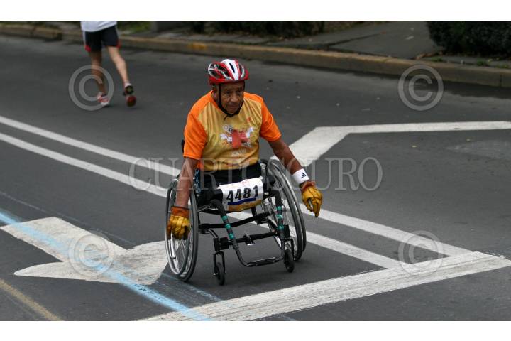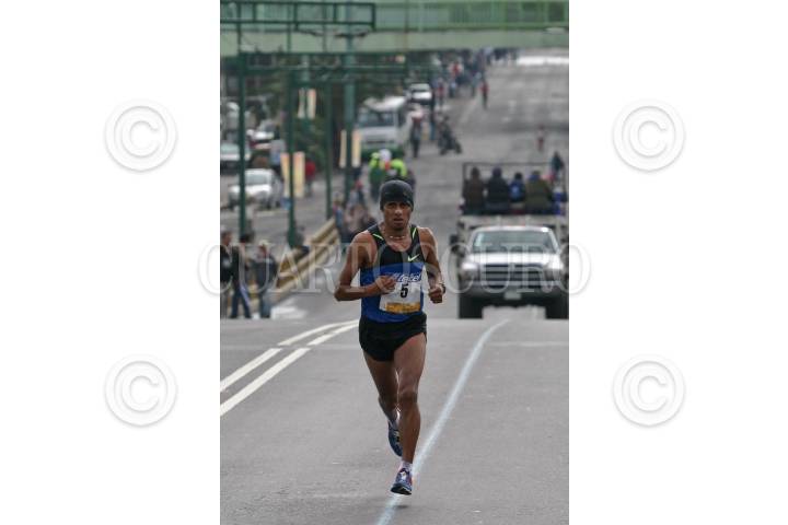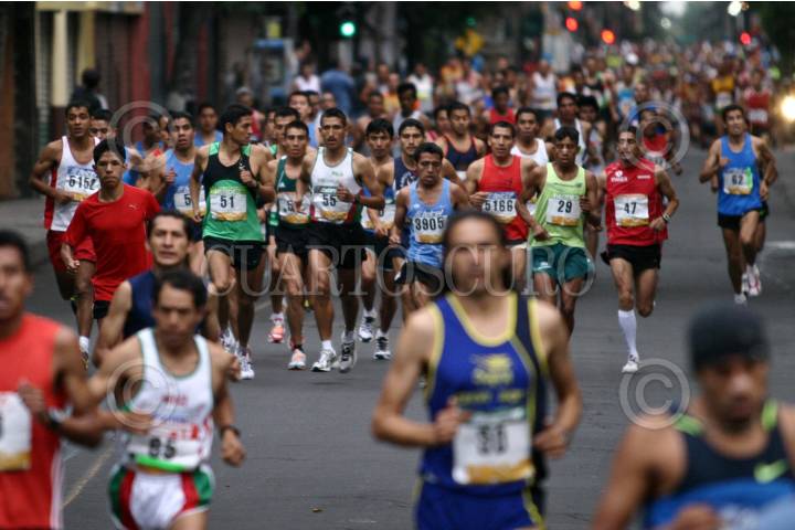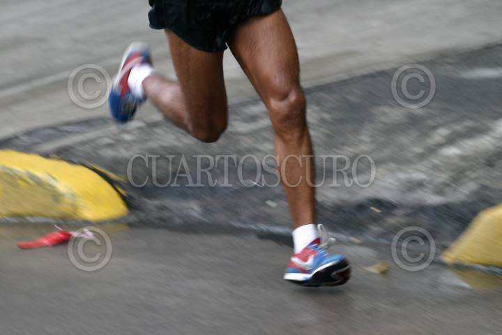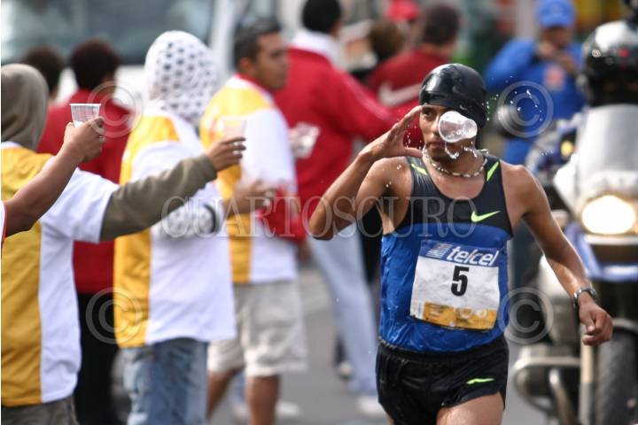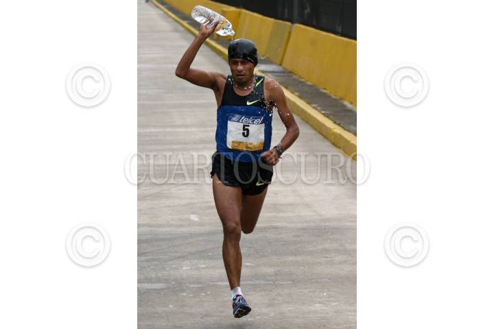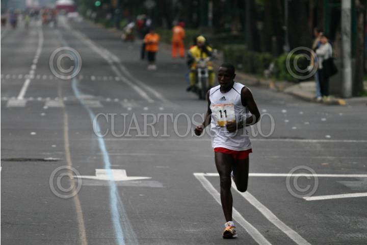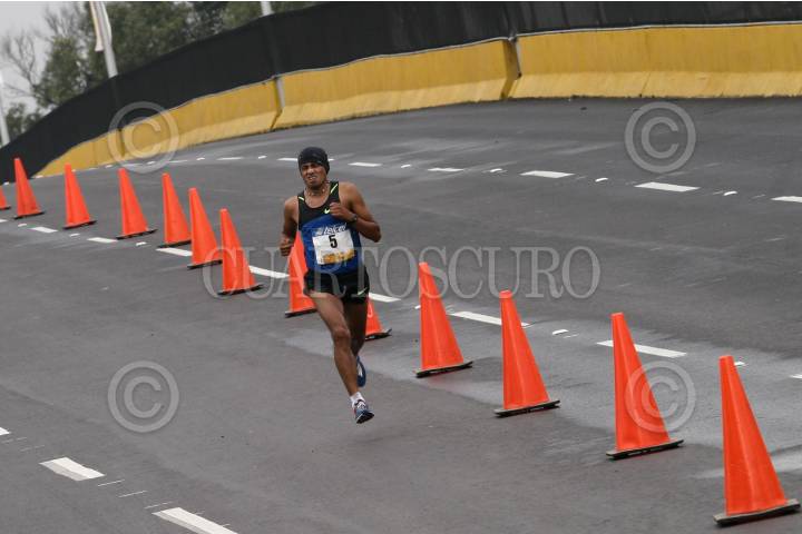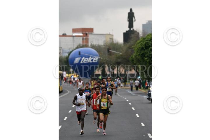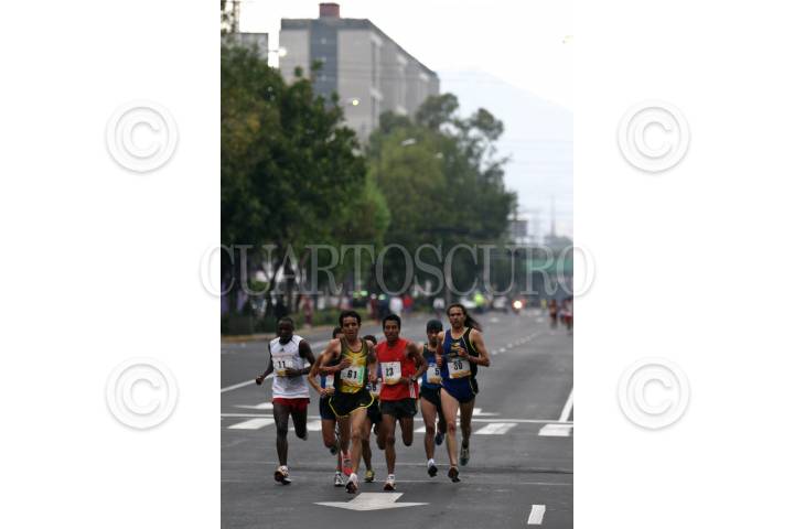 MÉXICO D.F., 27SEPTIEMBRE2009.- Al filo de las 8:15 hrs de esta mañana miles de competidores salieron de la linea de salida ubicada en la plancha del Zócalo capitalino para así dar inicio la edición XXVII del Maratón Internacional de la Ciudad de México que recorrió un circuito por toda la ciudad. En la imagen, Hedilberto Méndez a la punta de la competencia. FOTO: RODOLFO ANGULO/CUARTOSCURO.COM