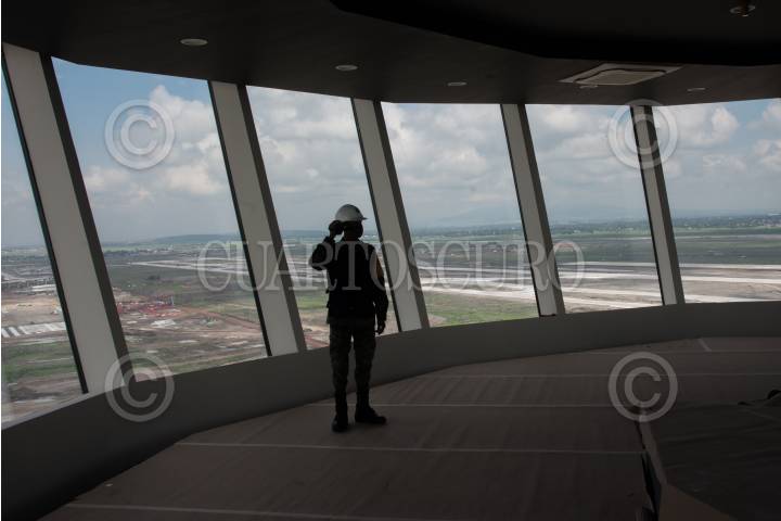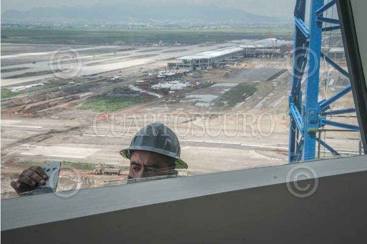 Un trabajador supervisa la construcción de la torre de control del Aeropuerto Internacional Felipe Ángeles (AIFA).