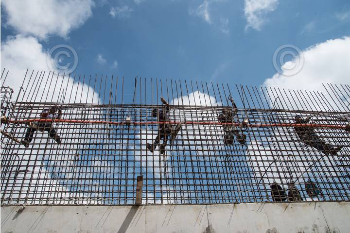 Trabajadores realizan sus actividades en la construcción del Aeropuerto Internacional Felipe Ángeles (AIFA).