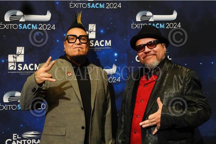 CIUDAD DE MÉXICO, 16OCTUBRE2024.- Cano y Tony Hernández, durante la alfombra roja de los premios Éxitos SACM 2024 de Sociedad de Autores y Compositores de México en donde galardonaron al cantautor Marco Antonio Solís. realizada en el auditorio Roberto Cantoral. FOTO: ROGELIO MORALES /CUARTOSCURO.COM