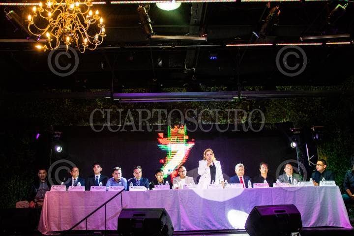 CIUDAD DE MÉXICO, 04DICIEMBRE2024.- Los compositores Armando Ávila, Gil Rivera, Mónica Vélez, Arturo Márquez, Martín Urieta, Carlos Lara y el músico FATO durante la instalación de la Asamblea General de 2024 en la sede de la institución. FOTO: GALO CAÑAS/CUARTOSCURO.COM