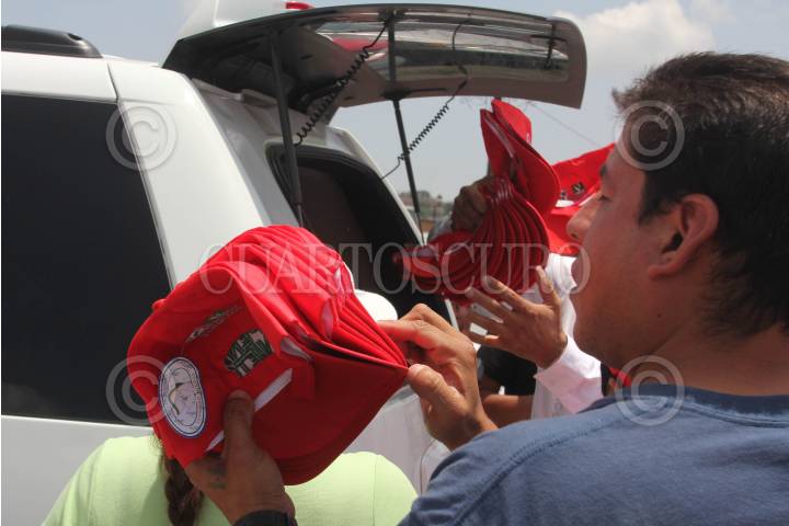 SAHUAYO, MICHOACAN, 14JUNIO2012.- Simpatizantes de Enrique Peña Nieto, candidato a la presidencia de la república de la formula “Compromiso por México” acompañaron al abanderado tricolor durante su gira que realizó por el estado. FOTO: SAÚL LÓPEZ /CUARTOSCURO.COM