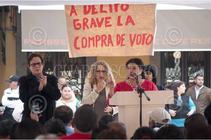 CIUDAD DE MÉXICO, 17ENERO2017.- Diputados de la Asamblea Constituyente por el partido MORENA, encabezados por Clara Brugada, se manifestaron afuera de la sede legislativa para manifestarse en contra de la compra de votos en la ciudad de México. FOTO: DIEGO SIMÓN SÁNCHEZ /CUARTOSCURO.COM